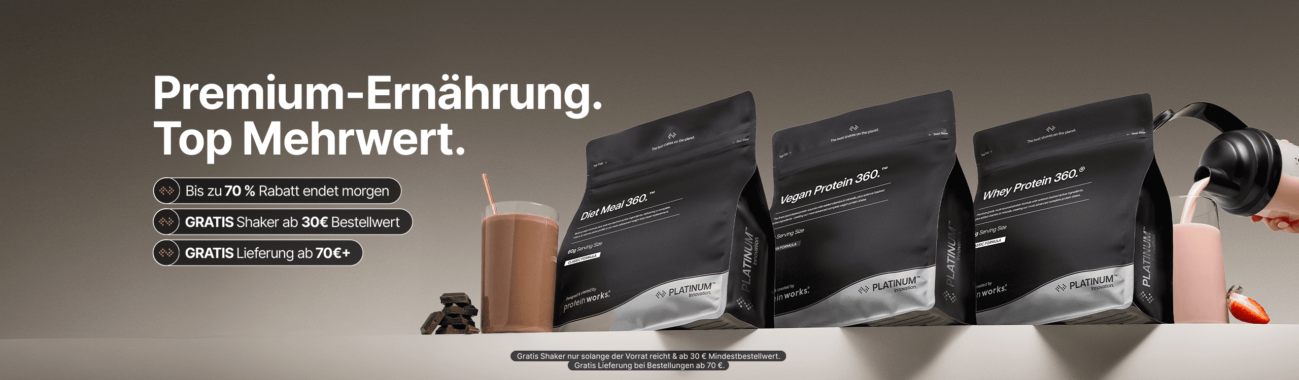 Bis zu 70% Rabatt sitewide, gratis Shaker im Wert von 11,99 € & gratis Versand im Wert von 4,99 €